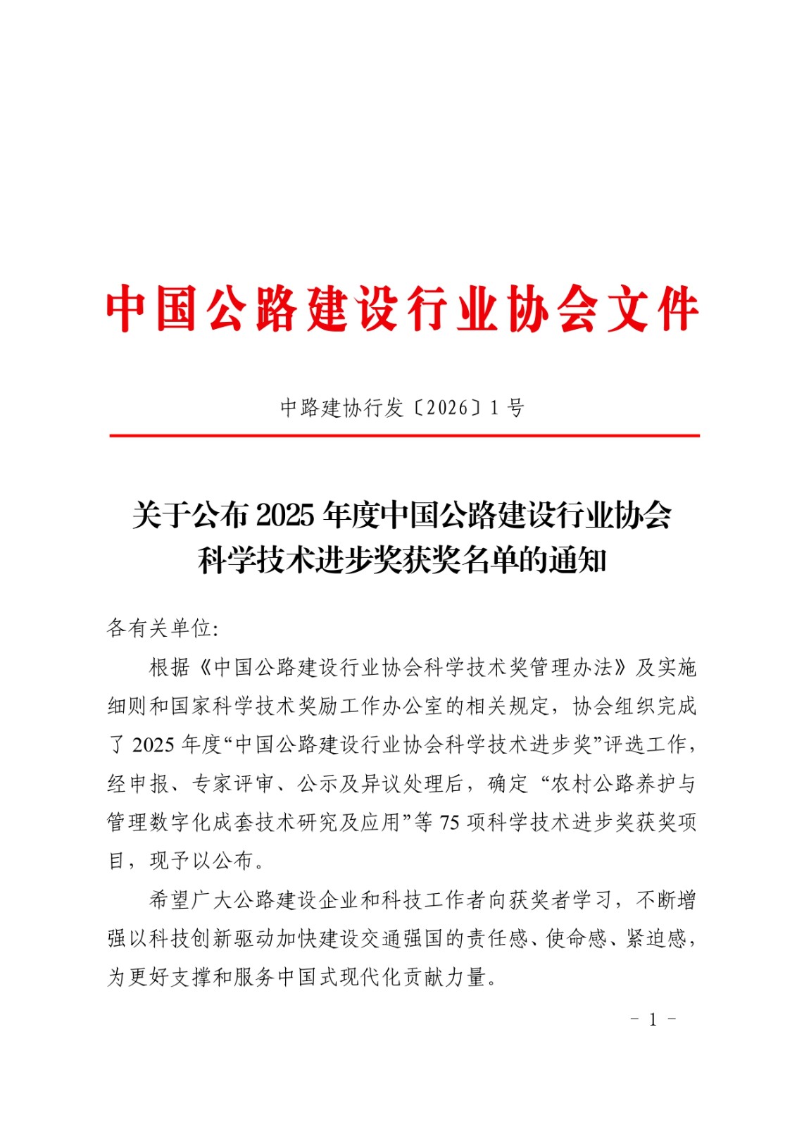 关于公布2025年度中国公路建设行业协会科学技术进步奖获奖名单的通知.pdf