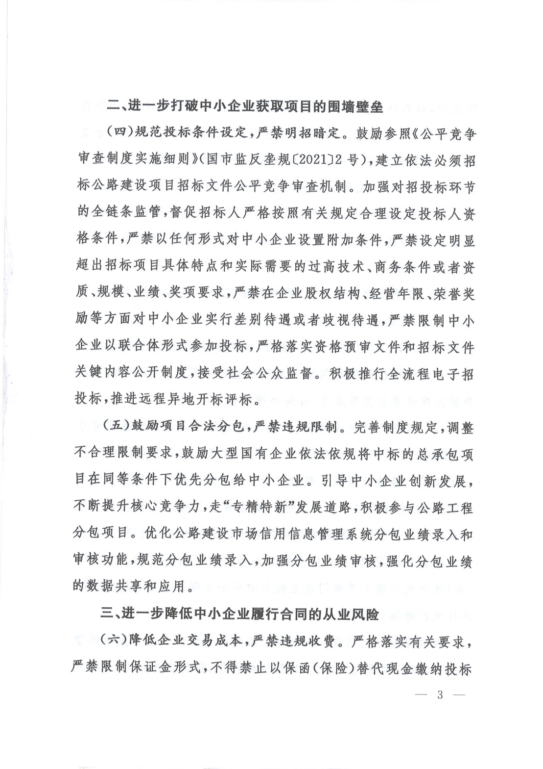 交通运输部办公厅关于进一步支持公路建设领域中小企业发展的通知