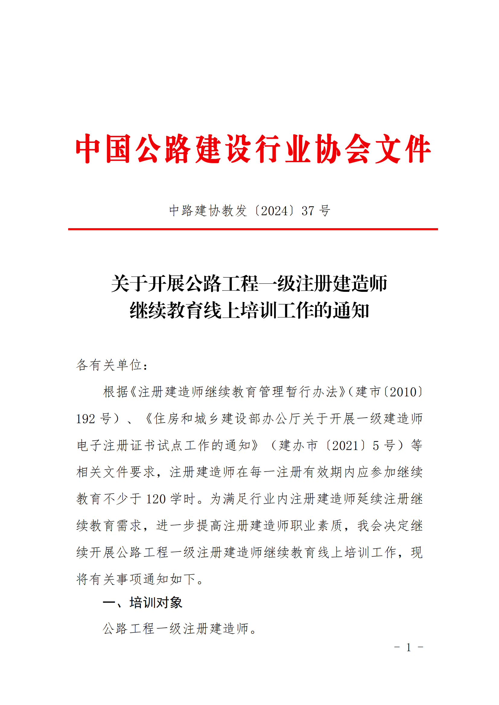 关于开展公路工程一级注册建造师继续教育线上培训工作的通知.docx.pdf