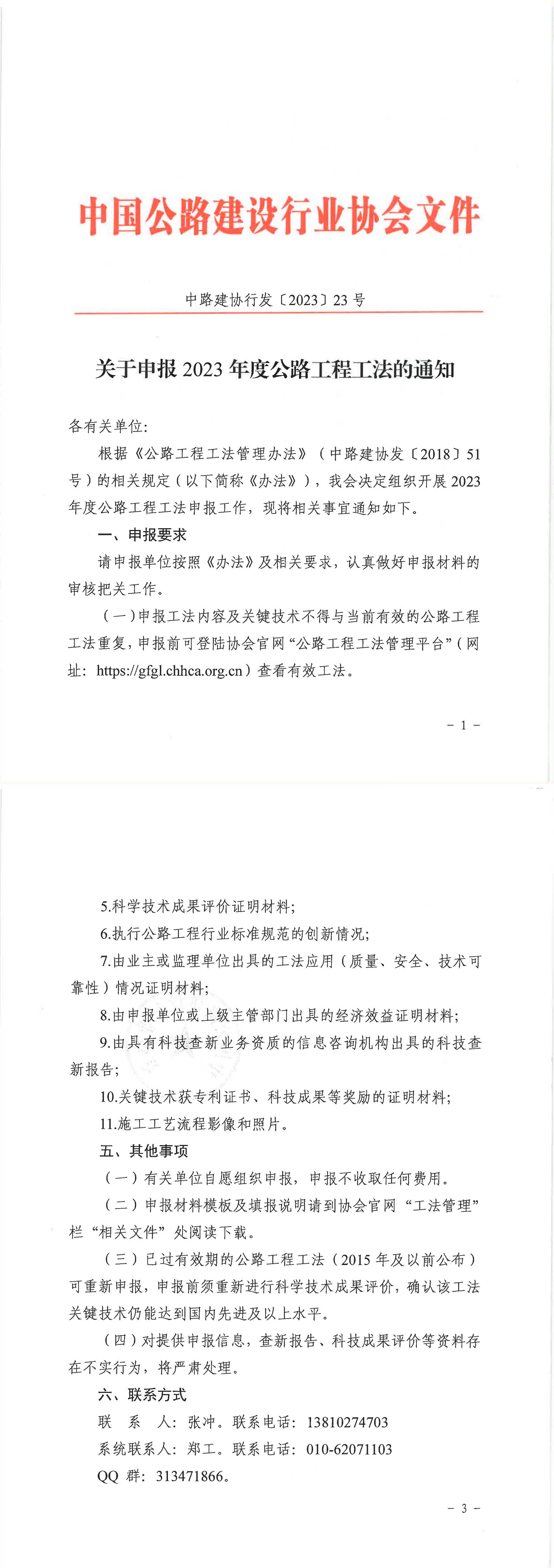 关于申报2023年度公路工程工法的通知