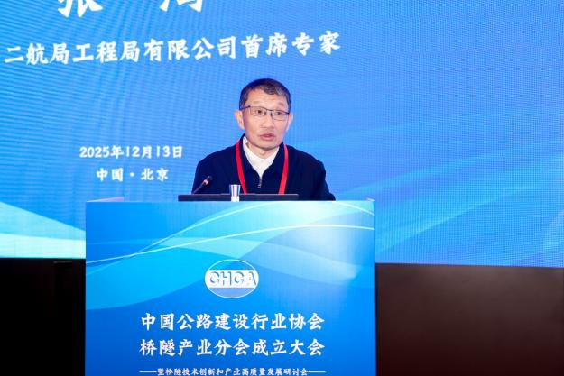 周荣峰在致辞中强调,桥隧产业是交通强国建设的重要支撑,交通运输部公路局始终将其放在突出位置,将全力支持桥隧产业分会开展工作,为分会履行职能、发挥作用创造良好环境。他提出三点希望:一是传承协会服务基因,筑牢产业发展 “连心桥”,凝聚行业发展合力;二是聚焦产业发展核心,激活技术创新 “动力源”,推动产业转型升级;三是坚守安全质量底线,守护产业发展 “生命线”,保障基础设施安全。希望分会引领行业在技术创新上实现新突破、在质量安全上达到新高度、在绿色发展上迈出新步伐,为加快建设交通强国、服务经济社会高质量发展作出新的更大贡献。