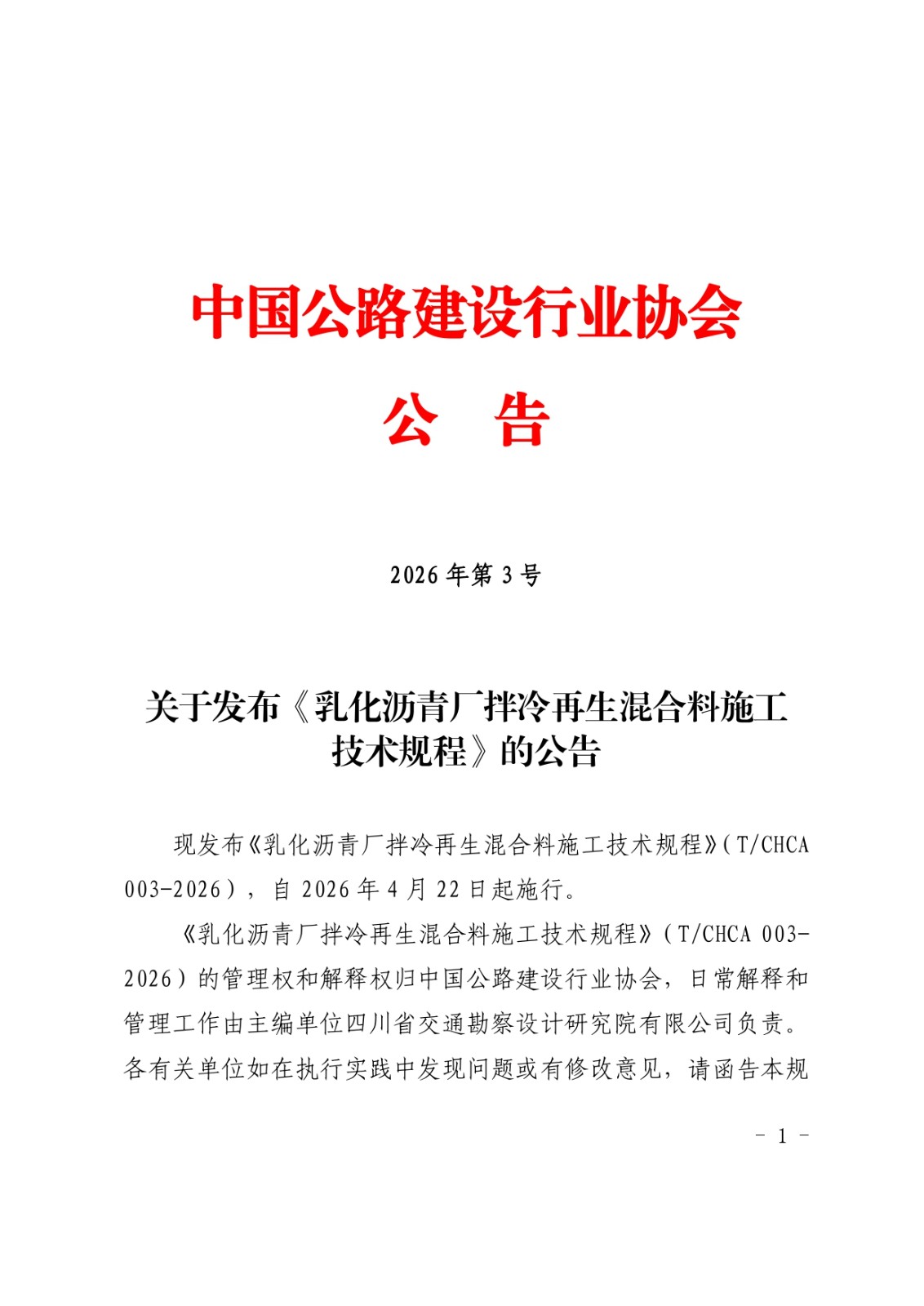 3号-关于发布《乳化沥青厂拌冷再生混合料施工技术规程》的公告.pdf