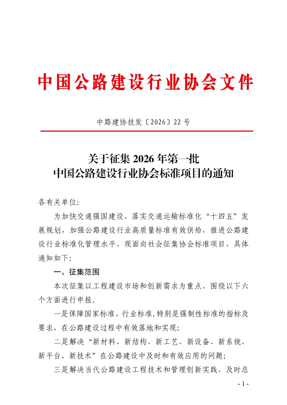 关于征集2026年第一批中国公路建设行业协会标准项目的通知.pdf