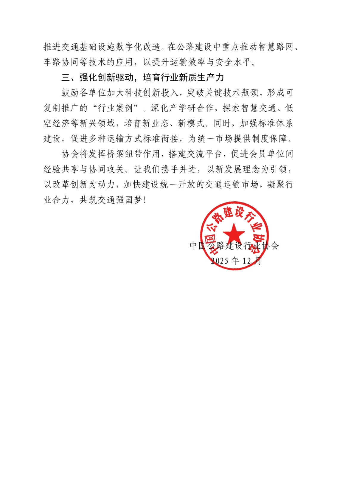 中国公路建设行业协会关于深入组织开展加快建设统一开放的交通运输市场的倡议书