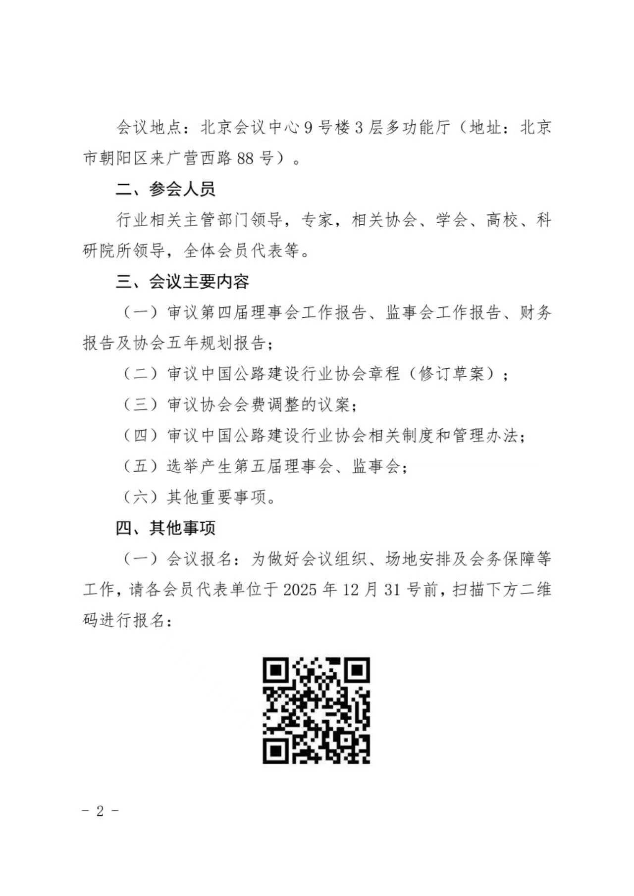 关于召开中国公路建设行业协会第五次会员代表大会暨五届一次理事会的通知