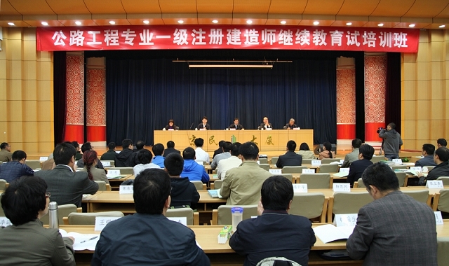 全国公路工程专业一级注册建造师继续教育试培训班于2012年10月25日在京顺利开班。本次培训班由中国公路建设行业协会组织重庆交通大学、长沙理工大学和山东交通学院举办。住房和城乡建设部建筑市场监管司副司长张毅、交通运输部公路局王锦河副局长出席开班仪式并讲话。中国公路建设行业协会常务副理事长单长刚出席开班仪式并致辞。