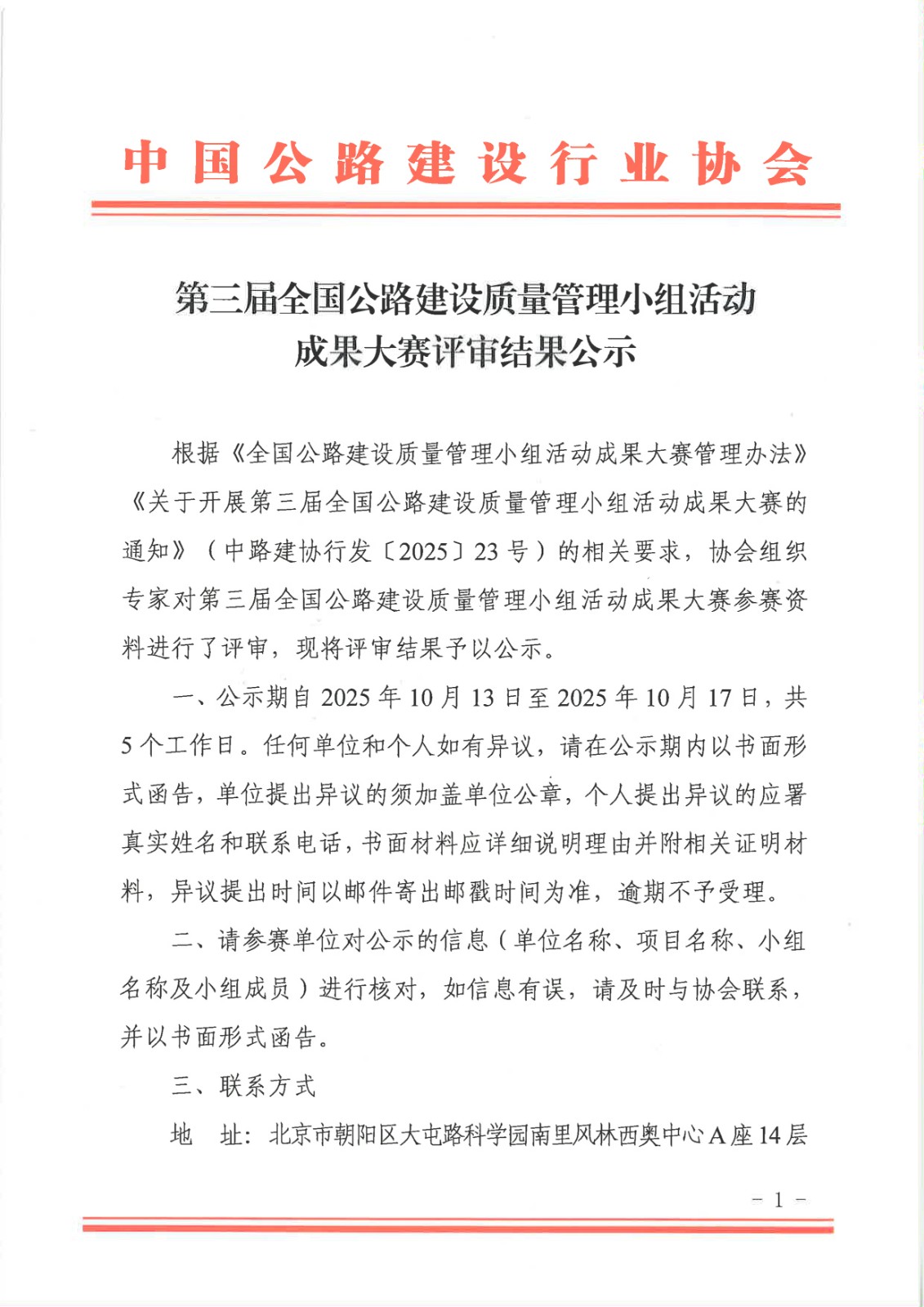 第三届全国公路建设质量管理小组活动成果大赛评审结果公示.pdf