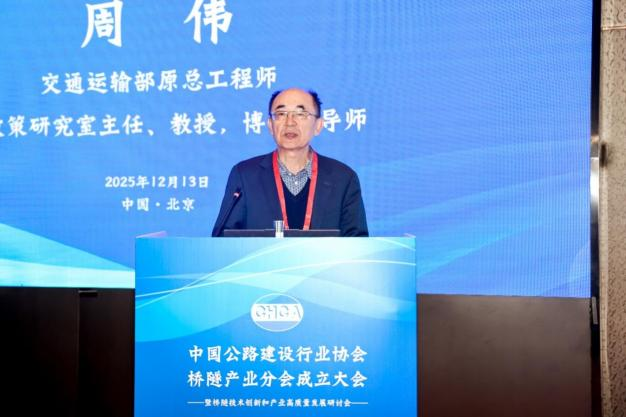 周荣峰在致辞中强调,桥隧产业是交通强国建设的重要支撑,交通运输部公路局始终将其放在突出位置,将全力支持桥隧产业分会开展工作,为分会履行职能、发挥作用创造良好环境。他提出三点希望:一是传承协会服务基因,筑牢产业发展 “连心桥”,凝聚行业发展合力;二是聚焦产业发展核心,激活技术创新 “动力源”,推动产业转型升级;三是坚守安全质量底线,守护产业发展 “生命线”,保障基础设施安全。希望分会引领行业在技术创新上实现新突破、在质量安全上达到新高度、在绿色发展上迈出新步伐,为加快建设交通强国、服务经济社会高质量发展作出新的更大贡献。