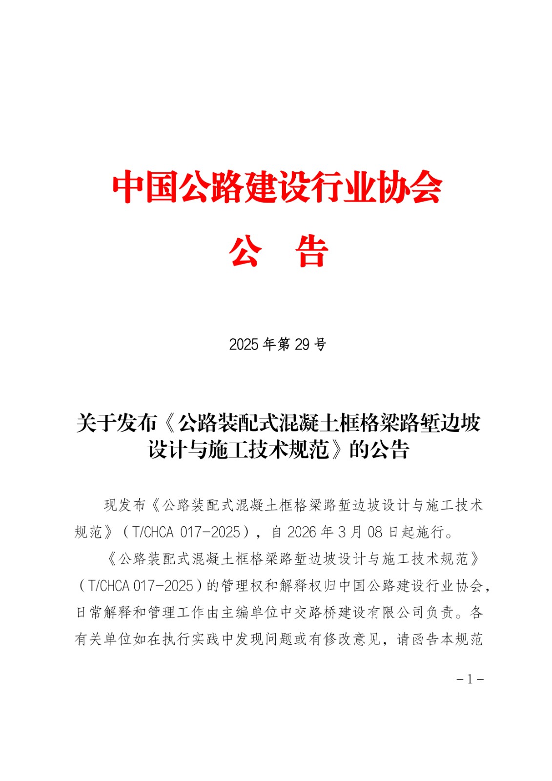 29号-关于发布《公路装配式混凝土框格梁路堑边坡设计与施工技术规范》的公告.pdf