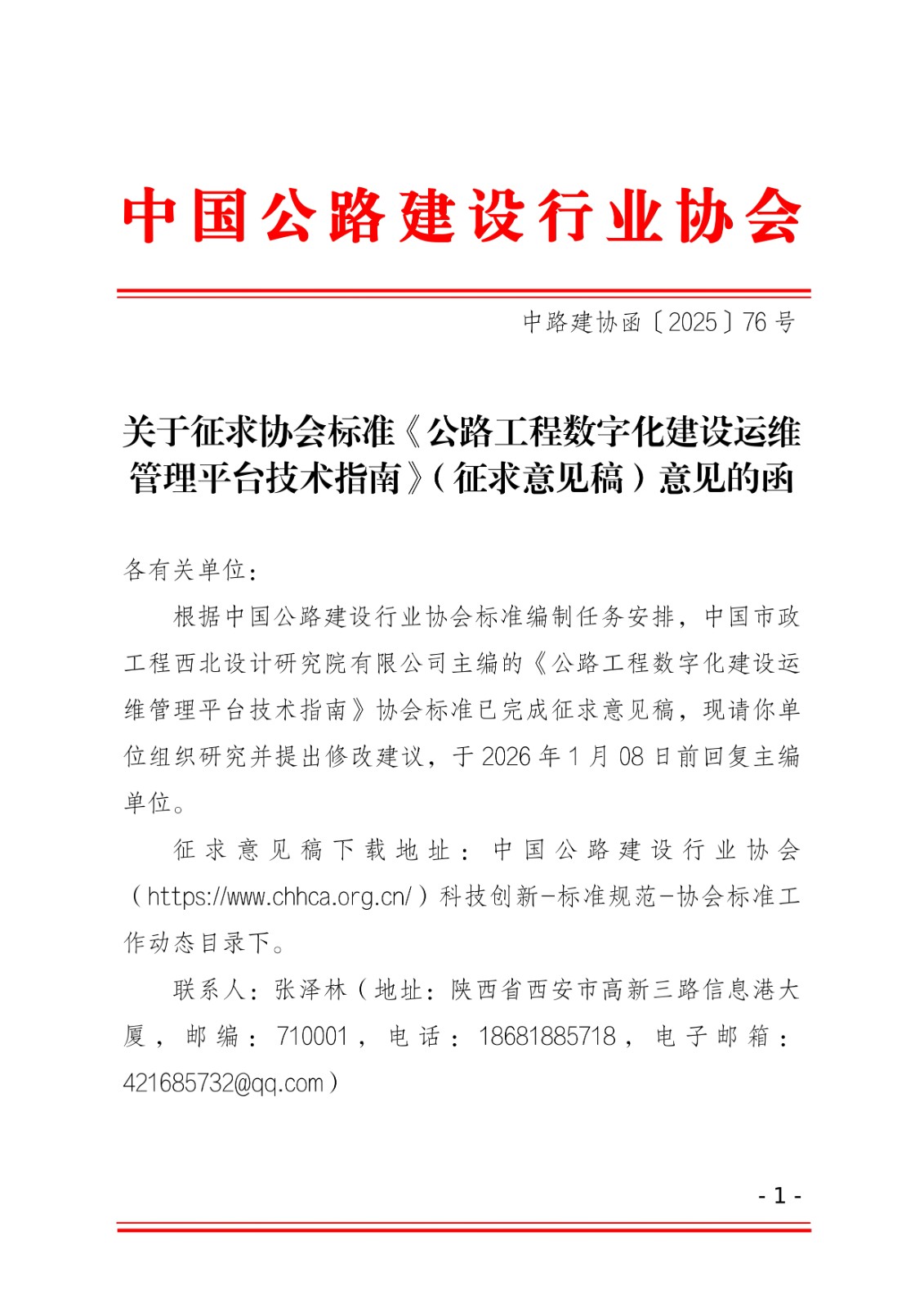 中路建协函〔2025〕76号-关于征求协会标准《公路工程数字化建设运维管理平台技术指南》(征求意见稿)意见的函.pdf