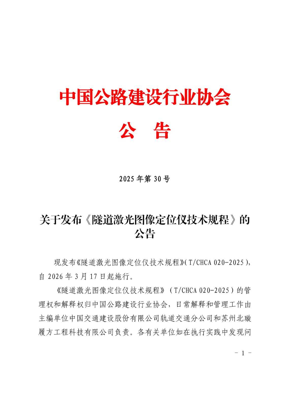 关于发布《隧道激光图像定位仪技术规程》的公告.pdf