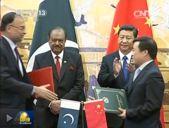 2月19日18时,在习近平主席和巴基斯坦总统马姆努恩•侯赛因阁下的见证下,中国路桥文岗总经理与巴基斯坦计划发展部伊克巴尔部长在人民大会堂签署了雷科特至伊斯兰堡公路项目的合作备忘录。中央电视台对此次签约仪式进行了报道。