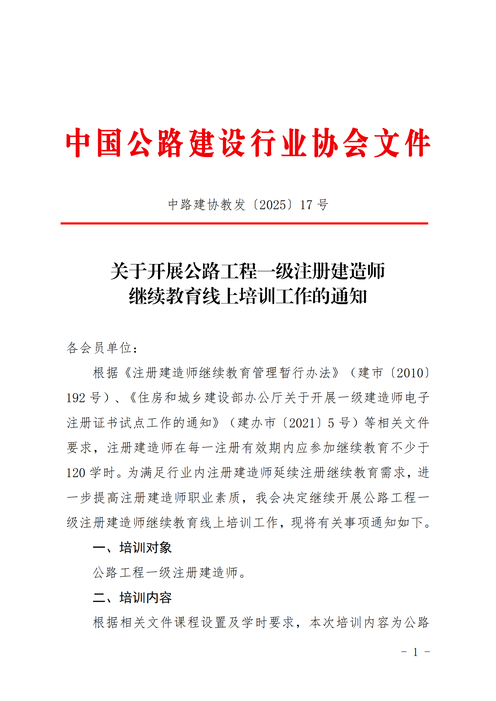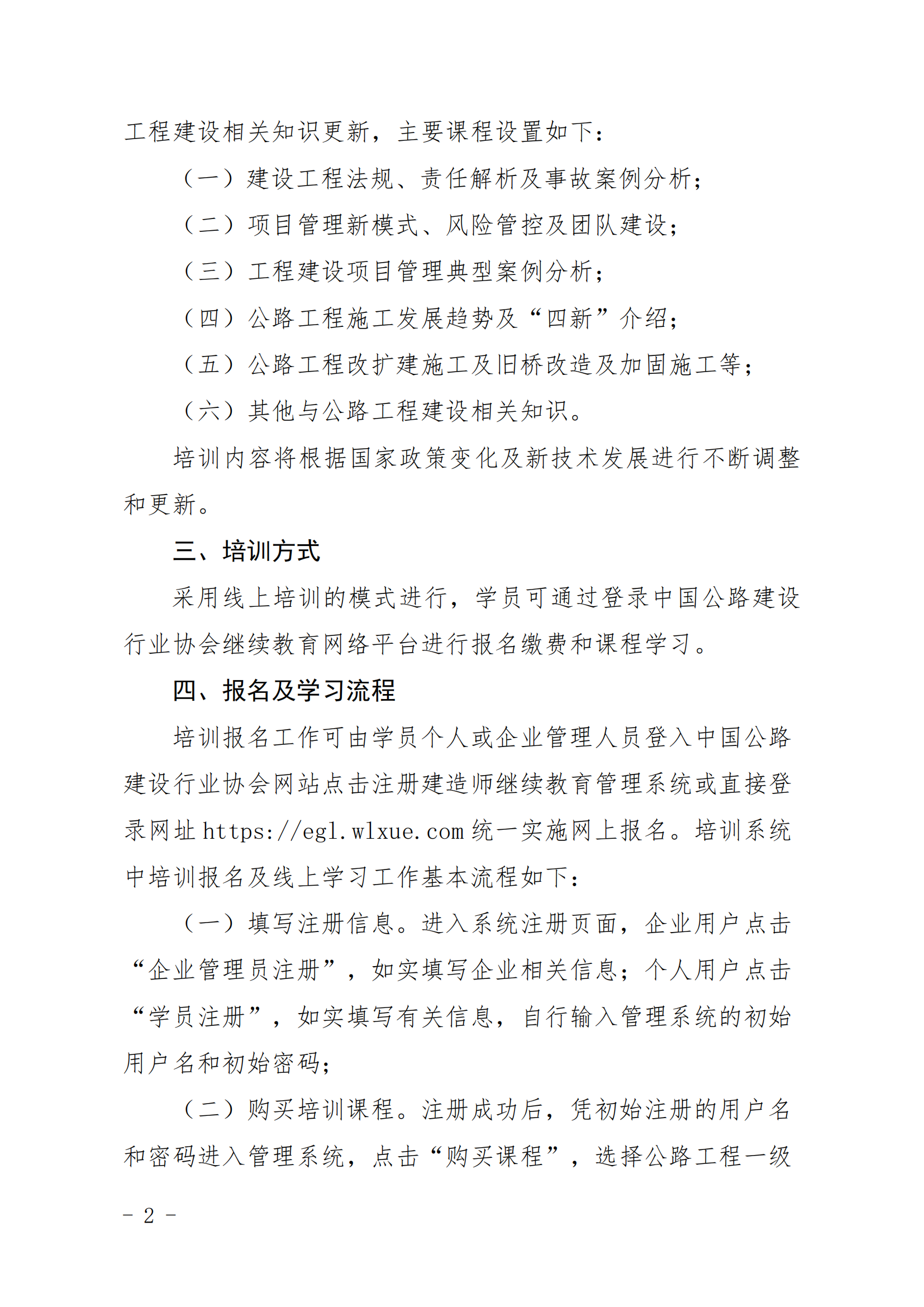 关于开展公路工程一级注册建造师继续教育线上培训工作的通知