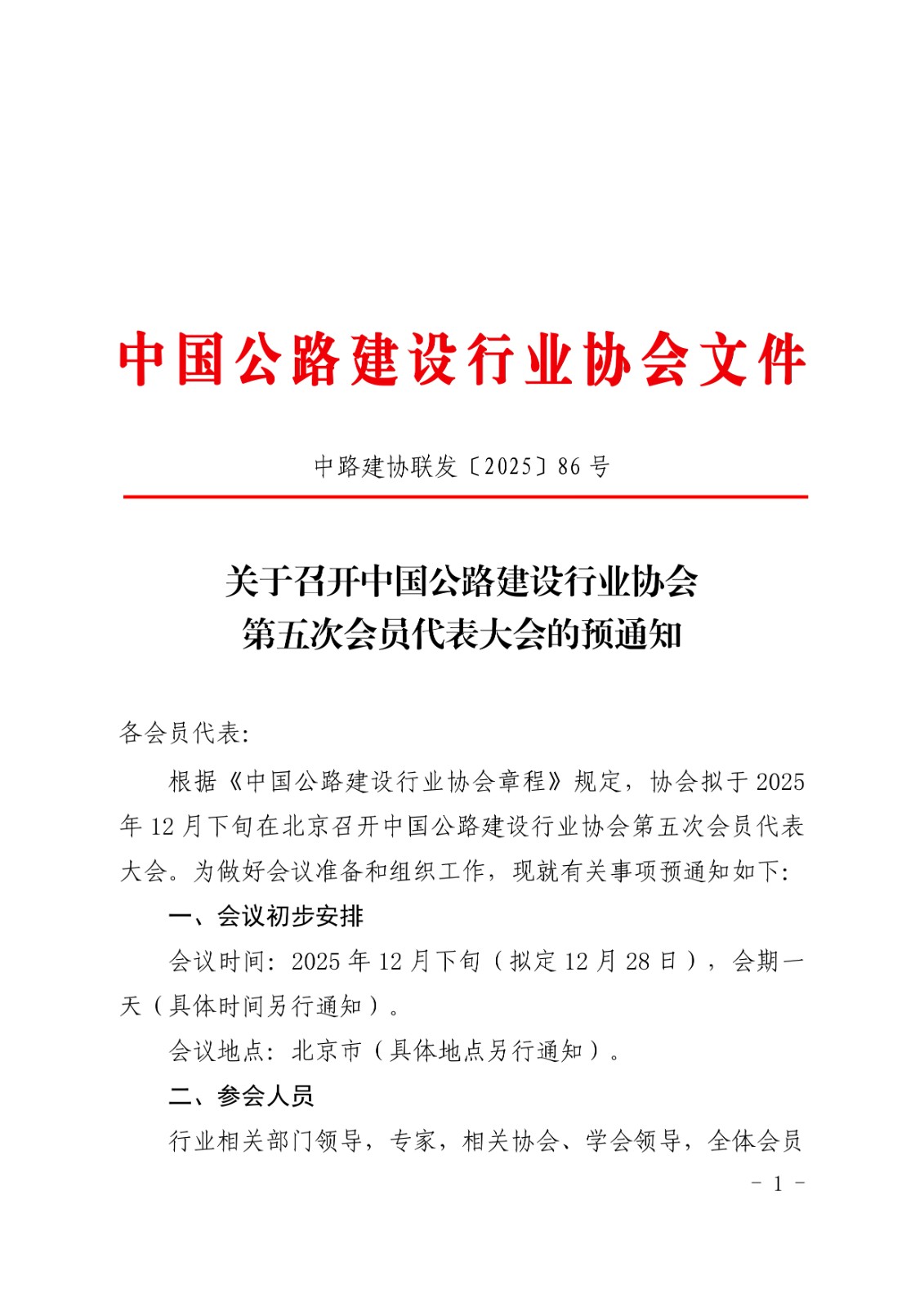 关于召开中国公路建设行业协会第五次会员代表大会的预通知.pdf