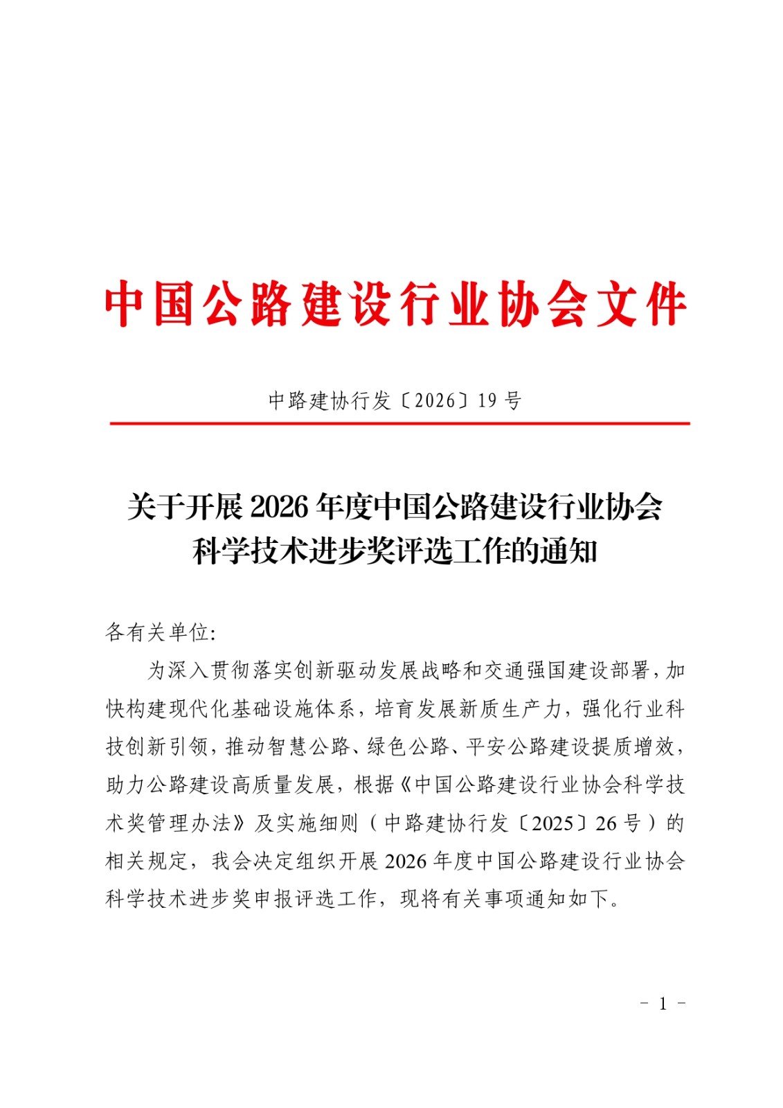 关于开展2026年度中国公路建设行业协会科学技术进步奖评选工作的通知.pdf